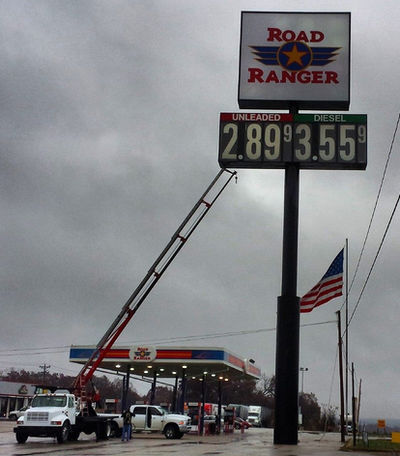 Signs can be installed by windows, headline pylons, reader boards, etc.